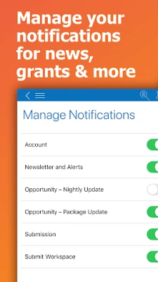 • Receive and manage push notifications from your Grants.gov account (login required)