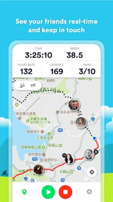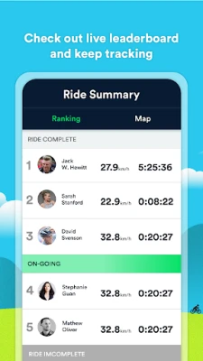 See the real-time location of your teammates, check if they arrived to intermediate stops or finish line on your ride map.